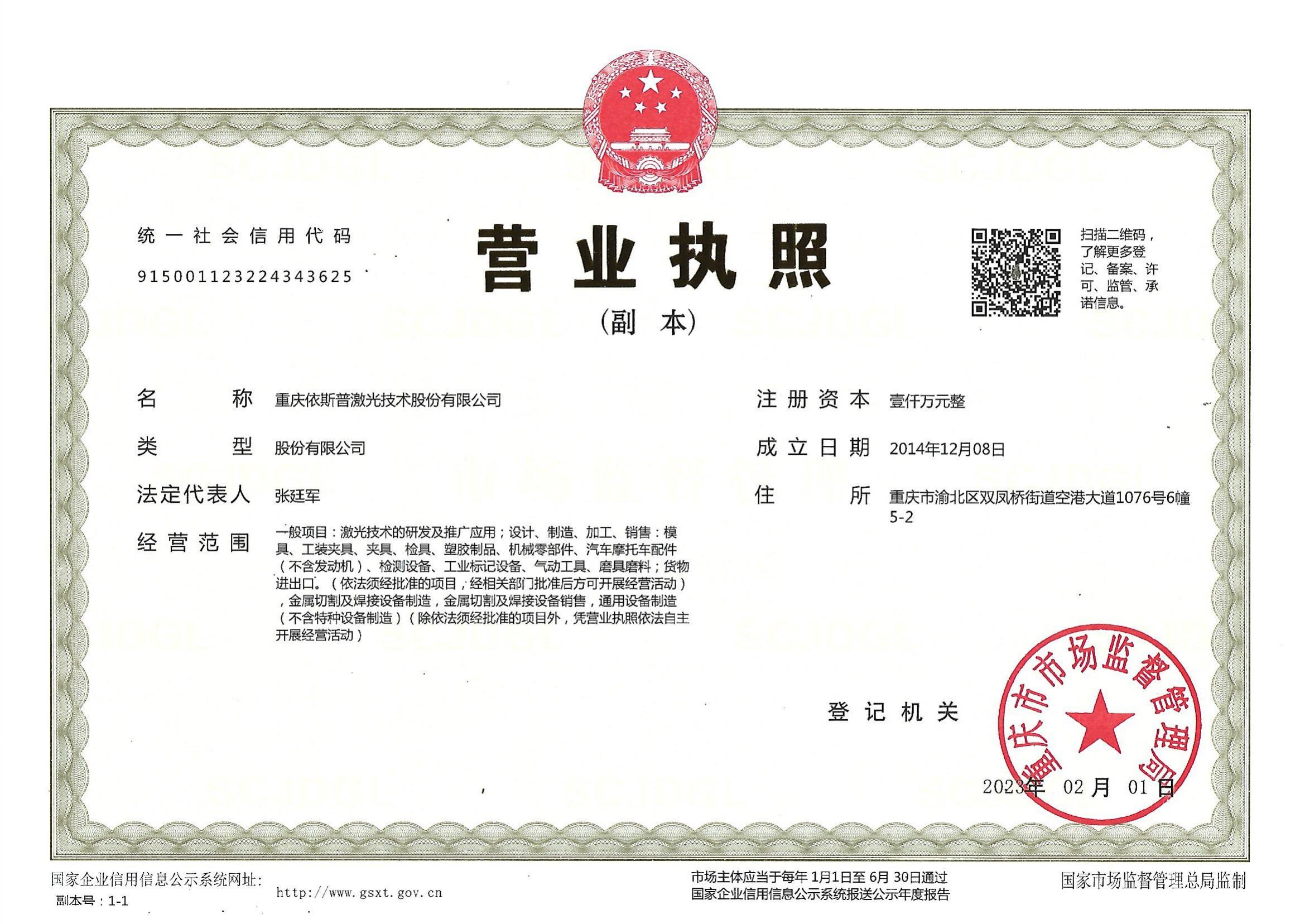 重慶依斯普激光技術股份有限公司 是一家科技型高新技術企業,公司位于重慶市渝北區空港大道1076號置尚金冠工業中心,占地面積約五千平方米,吸收了國外的先進的技術,專業研發、制造和銷售各類激光控制技術應用類產品。公司被評為創新基金重點培育企業,專精特新企業,通過了ISO9001質量管理體系認證,產品多次獲得重慶市高新技術產品證書及實用新型專利證書等。 依斯普激光的主導產品為激光切割機系列、激光焊接機系列,激光打標機及氣動打標機系列等,廣泛應用在